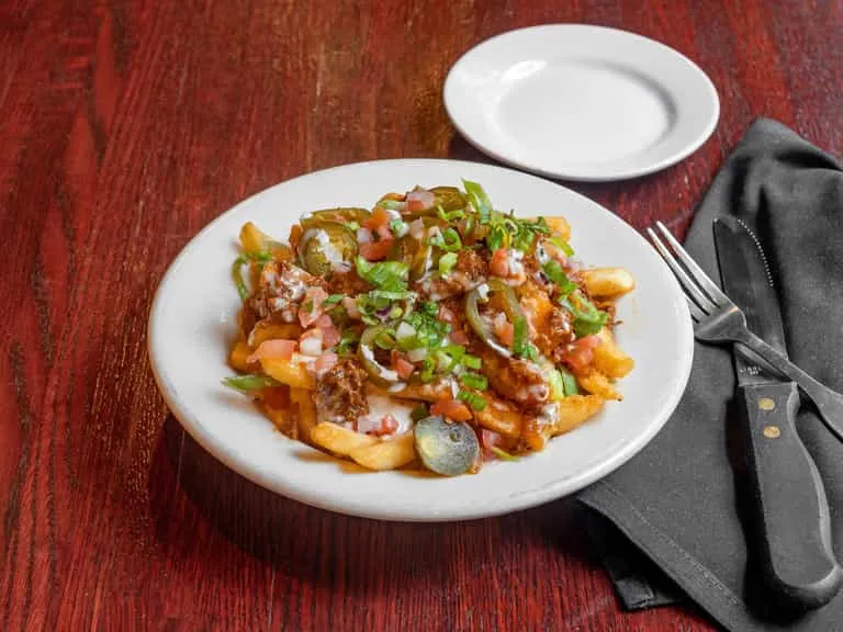 Home-style Fries topped with Chili, Pico, Jalapenos and in house queso.