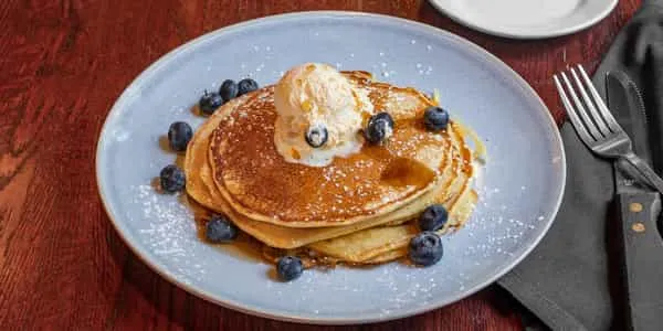 Two fluffy pancakes, served with two eggs of your choice, and a choice of ham, bacon or sausage.